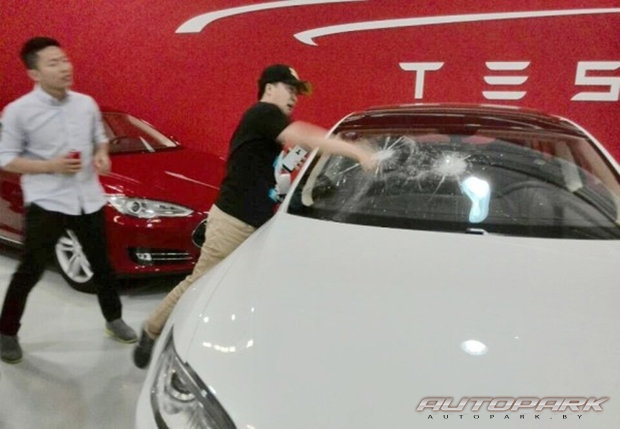 Китайский покупатель, потеряв все терпение, безжалостно разбил у электромобиля Tesla Model S переднее стекло. Данную машину стоимостью в 173 600 долларов китаец ждал еще с прошлого года с октября.