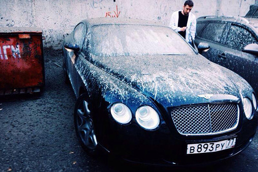 В центре Москвы на стройке Bentley модели люкс известного продюсера оказался под толстым слоем бетона после аварии. Пролился бетон на автомобиль с общей стоимостью в $270 тыс. на строительной площадке Института цивилизаций мира, кстати, учрежденного Владимиром Жириновским. Виновные в повреждении авто строители уже обещали возместить ущерб. Как рассказал в соцсетях продюсер, его машина не была застрахована.