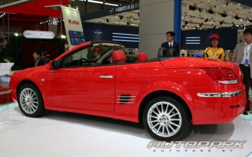 В этой машине слились в единое целое Mercedes CLK и Renault Megane CC. Как видно — передок и корма слизаны с немца, а филейная часть от Renault. Под капотом бензиновый мотор 2.0L BIVT мощностью 140 л.с. (0-100 км/ч — 14с / 180 км/ч) в паре с 5ст. механикой (автомат — опция). Размеры автомобиля — 4490мм x 1780мм x 1405мм. База типичный китайский набор — 4 подушки безопасности, ABS+EBD. Цена автомобиля в Китае — 200 000 юаней. В Россию он вроде не поставляется, а так был бы спрос…. (догадайтесь сами почему).